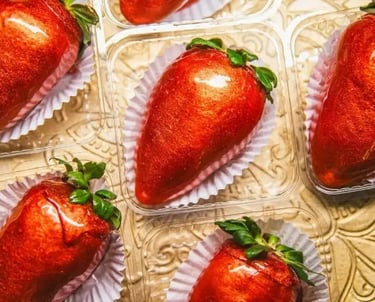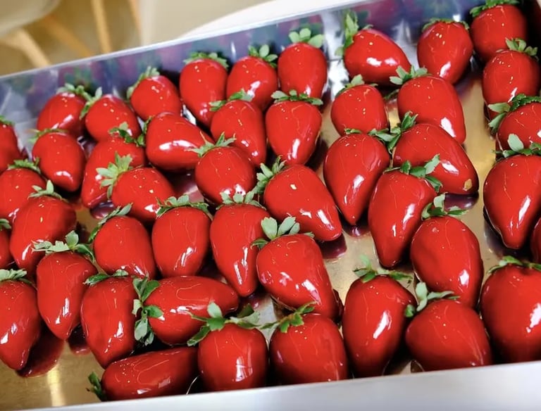 Delicie-se com os melhores Morangos do Amor, brilhantes, crocantes e apaixonantes. O doce perfeito para presentear ou para você se mimar.